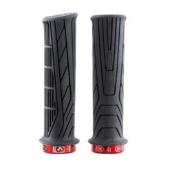 Les gros pads en haut du grip procurent du confort à la paume de la main, ils filtrent particulièrement bien les vibrations et les impacts. Les fines lamelles placées au contact des doigts offrent du grip et du moelleux. Le biseau et le léger évasement en bout de grip améliorent la prise en main. Enfin, le lock-on fixe le grip sur votre cintre, pour un ride en toute sécurité.