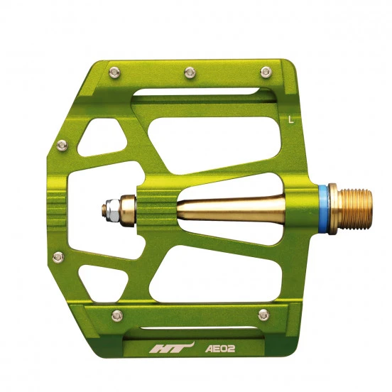 La AE02T est probablement la première chose que l’on remarquera sur votre vélo. Ajourée jusqu’à en faire apparaître l’axe, elles sont surtout incroyablement light : 259g la paire en version titane, ça calme ! Mais ne les croyez pas pour autant fragiles, leur axe en titane CNC et le système de roulements breveté HT leur garantissent de rester dans les standards de la marque, c’est à dire fiables et ultra résistantes.