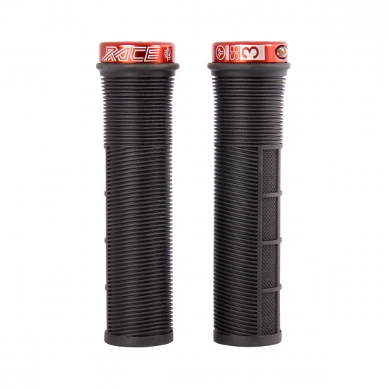 Nous avons développés le grip Race pour tous nos pilotes qui trouvaient notre grip logo confortable mais trop gros en diamètre. Il leur fallait du confort mais un grip fin et surtout très accrocheur. Il fallait qu’il soit résistant sur les cotés pour ne pas se déchirer sur les arbres qui traversent, mais devait être léger.