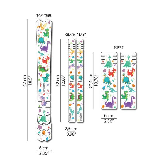 AdhĂ©sifs de protection vinyl transparent de 300 micron d’Ă©paisseur, imprimĂ©s avec encres latex, prĂ©dĂ©coupĂ©s pour s’adapter aux diffĂ©rents cadres vĂ©los. Il peut ĂŞtre nĂ©cessaire de recouper certaines pièces avec une paire de ciseaux ou un cutter pour une parfaite adaptation au support.Â