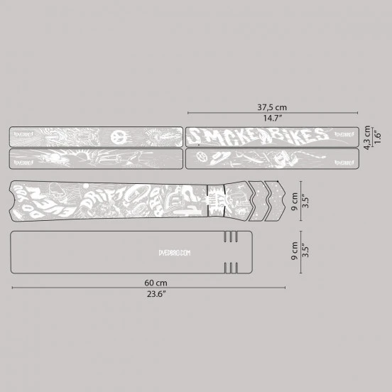 AdhĂ©sifs de protection vinyl transparent de 300 micron d’Ă©paisseur, imprimĂ©s avec encres latex, prĂ©dĂ©coupĂ©s pour s’adapter aux diffĂ©rents cadres vĂ©los. Il peut ĂŞtre nĂ©cessaire de recouper certaines pièces avec une paire de ciseaux ou un cutter pour une parfaite adaptation au support.Â