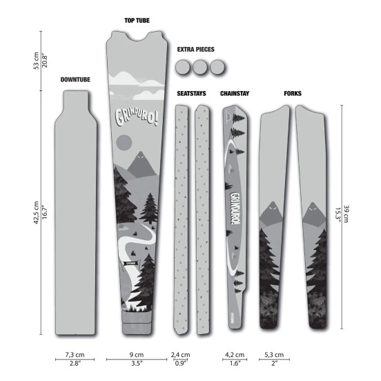 AdhĂ©sifs de protection vinyl transparent de 300 micron d’Ă©paisseur, imprimĂ©s avec encres latex, prĂ©dĂ©coupĂ©s pour s’adapter aux diffĂ©rents cadres vĂ©los. Il peut ĂŞtre nĂ©cessaire de recouper certaines pièces avec une paire de ciseaux ou un cutter pour une parfaite adaptation au support.Â