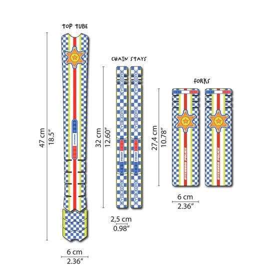 AdhĂ©sifs de protection vinyl transparent de 300 micron d’Ă©paisseur, imprimĂ©s avec encres latex, prĂ©dĂ©coupĂ©s pour s’adapter aux diffĂ©rents cadres vĂ©los. Il peut ĂŞtre nĂ©cessaire de recouper certaines pièces avec une paire de ciseaux ou un cutter pour une parfaite adaptation au support.Â