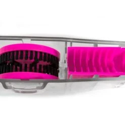 Il nettoie en quelques secondes votre chaîne grace au produit nettoyant qui peut être envoyé en spray puis réutilisé dans le carter bas. Les brosses nettoyantes ont 120 points de contact pour passer vraiment partout. Le liquide de nettoyage usé part dans un second reservoir pour ne pas salir à nouveau la chaîne propre. Enfin, il comprend 75 ml de Drivetrain cleaner bio, sans danger pour l’environnement.